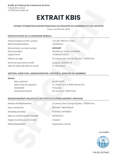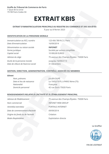 - The third is that, even if the GF could be productive, the current managers cannot use or even open a bank account that would have allowed to pay the professional manager for writing the PSG. Some registries of the commercial court are reluctant to accept a modification of the Kbis, a mandatory document for the bank.