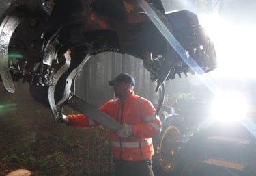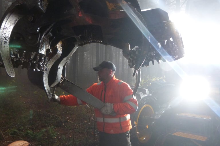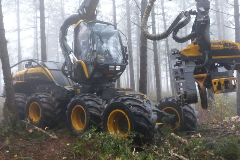 Première coupe d’éclaircie sélective dans une plantation de cèdres réalisée mécaniquement par l’entreprise Triboulet sous la maîtrise d’œuvre du gestionnaire Alcina.