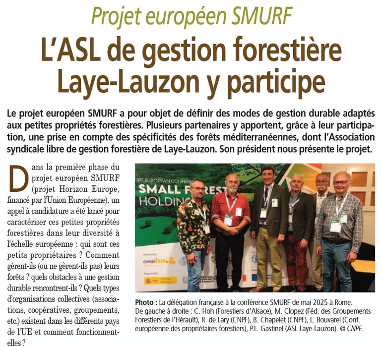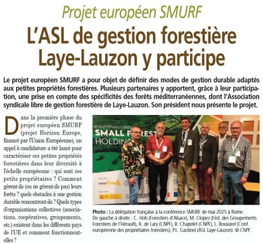 "Forêt méditerranéenne", dans son trimestriel de décembre 2025 "la feuille et l'aiguille", présente l'ASL de gestion forestière de Laye-Lauzon des Alpes-de-Haute-Provence qui participe au projet SMURF 1.